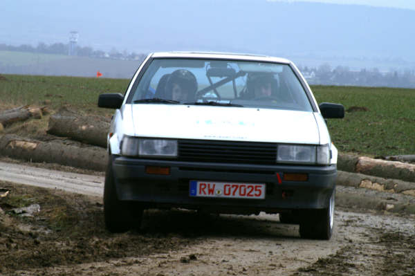 An den Start gingen wir mit einem Toyota Corolla AE86, Baujahr 84, mit ca.130ps, 920kg und Heckantrieb, in der seriennahen Klasse bis 1600ccm. Ziel war es, Erfahrung zu sammeln, das Auto wieder heil heimzubringen und ne Menge Spass zu haben.