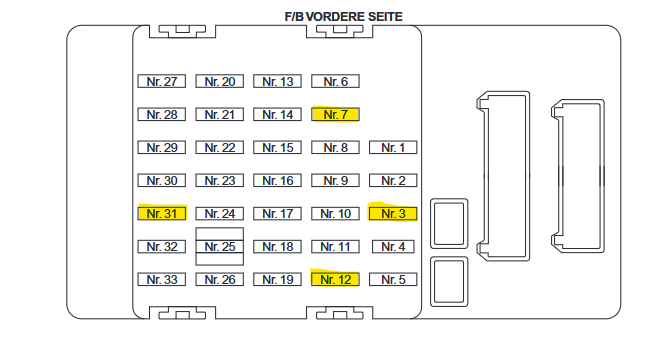 Die gelbe Sicherung Nr. 8 (20A) - zuständig lt. Handbuch für "Rückfahrt" - war durchgebrannt.