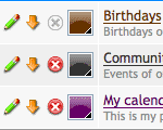 Die Checkbox in jeder Zeile gibt dir die Möglichkeit, mehrere Kalender auf einmal zu bearbeiten. Markierst du die gewünschten Kalender so erscheint unter der Auflistung ein Button. Wenn du auf diesen klickst, erhältst du Optionen, die du auf die ausgewählten Kalender anwenden kannst.