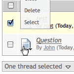 Die zweite Möglichkeit ist die Massenbearbeitung. Hierfür markierst du zunächst über die Checkboxen () die gewünschten Themen oder Beiträge. Wenn du beispielsweise fünf Themen markiert hast, findest du am Seitenende einen Button mit der Aufschrift »5 Themen markiert« und ebenfalls einen Pfeil. Mit einem Klick auf diesen Button öffnest du das Menü zur Bearbeitung aller markierten Themen. Gleiches gilt natürlich für die Beiträge.
