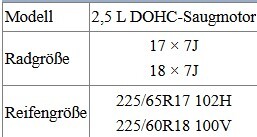 3. Bei meinem 2018 Komfort ist die èingetragene Reifen- / Felgengröße 225/65R17 in Kombi mit 17X7J